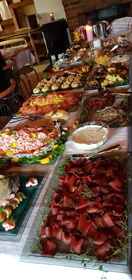 - Helkokt ørret med reker, majones og dill. (Min.15 pers)